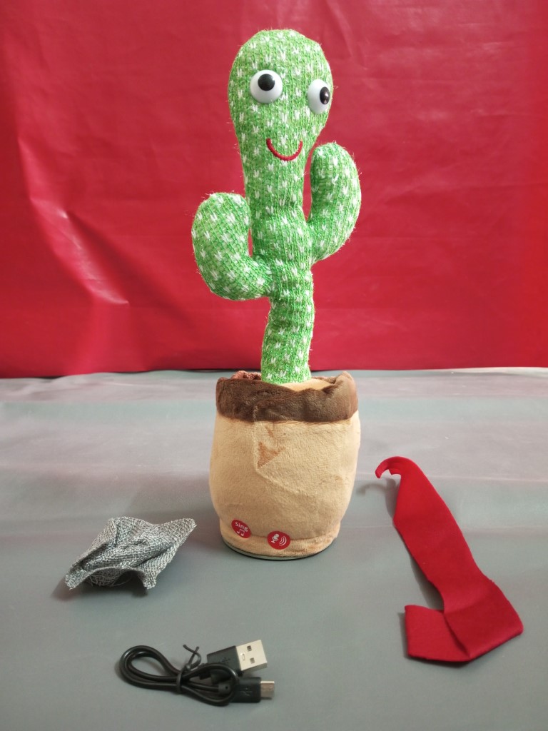 Talking and Dancing Cactus, Dancing on Music, Lights, repeat Voice, Rechargable Cactus Toy Fun with Cap and Shawl.